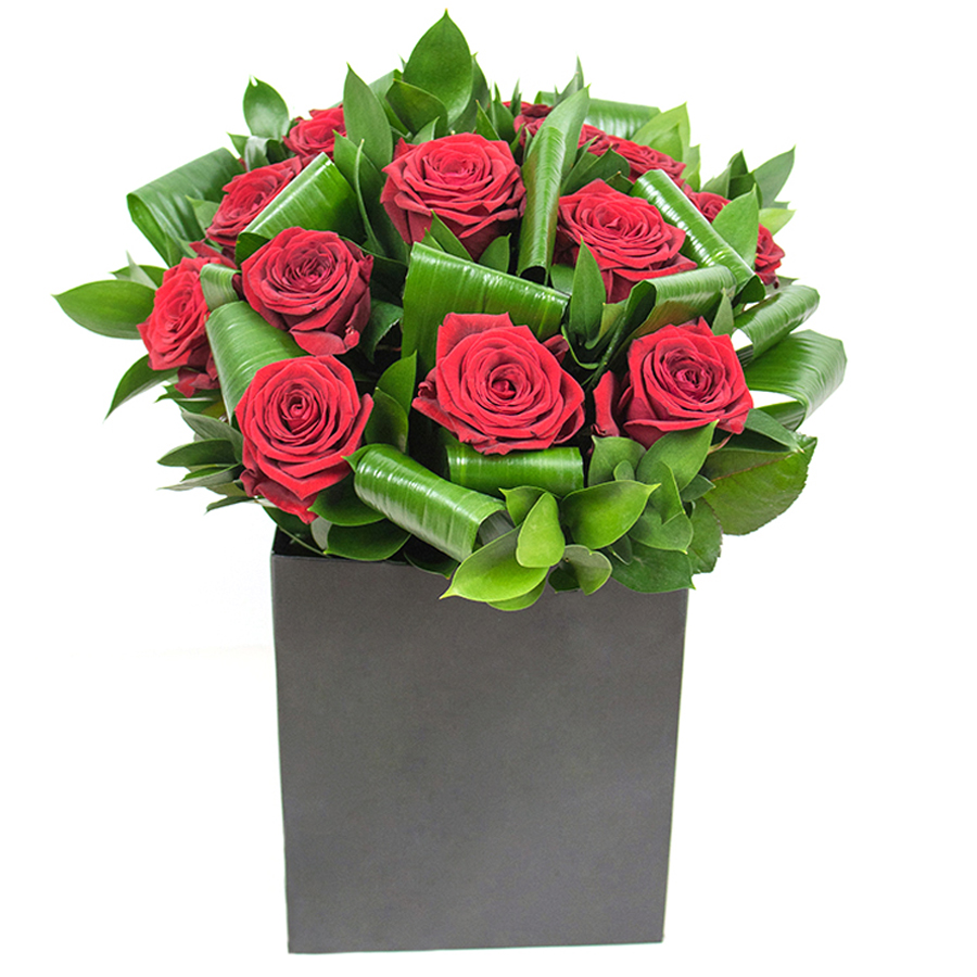 Experience the unparalleled beauty of our stunning bouquet, featuring a harmonious blend of vibrant red roses, lush aspidistra leaves, and elegant ruscus. Each flower is hand-selected to ensure maximum freshness and quality, making this arrangement a perfect centerpiece for any home.